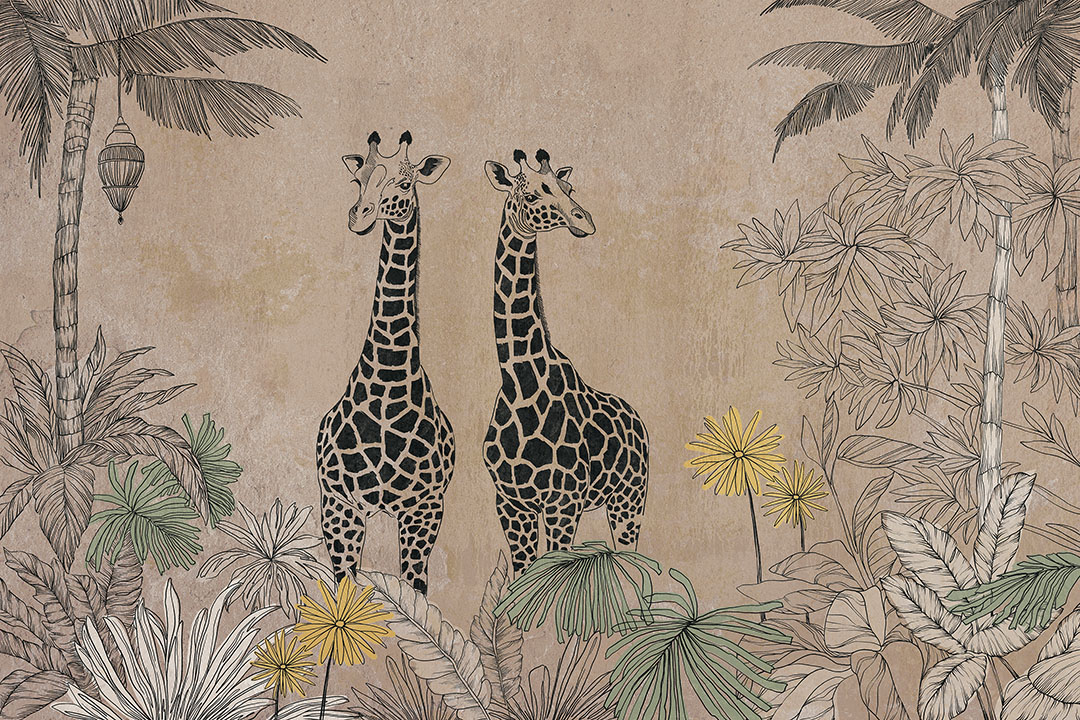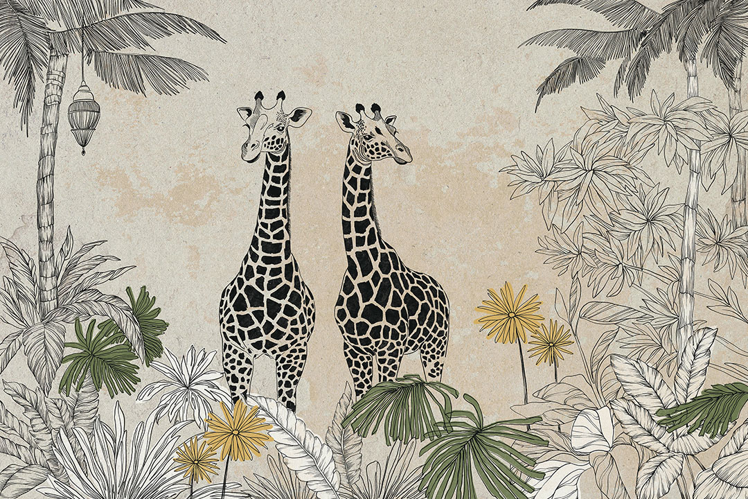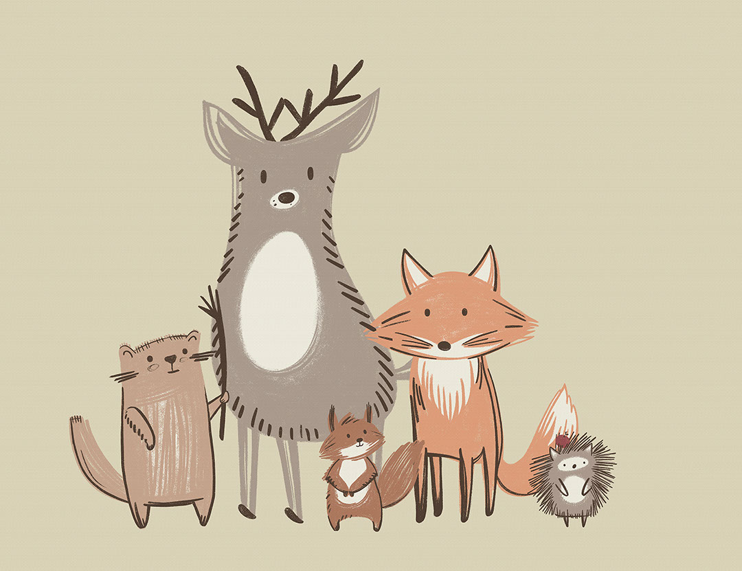 Papier peint renard, ours et lièvre dans un style graphique minimaliste