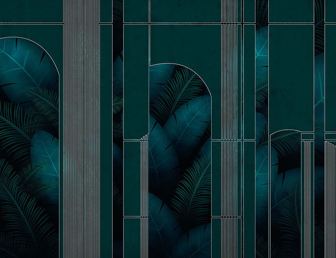 Papier peint aquarelle feuilles Monsters