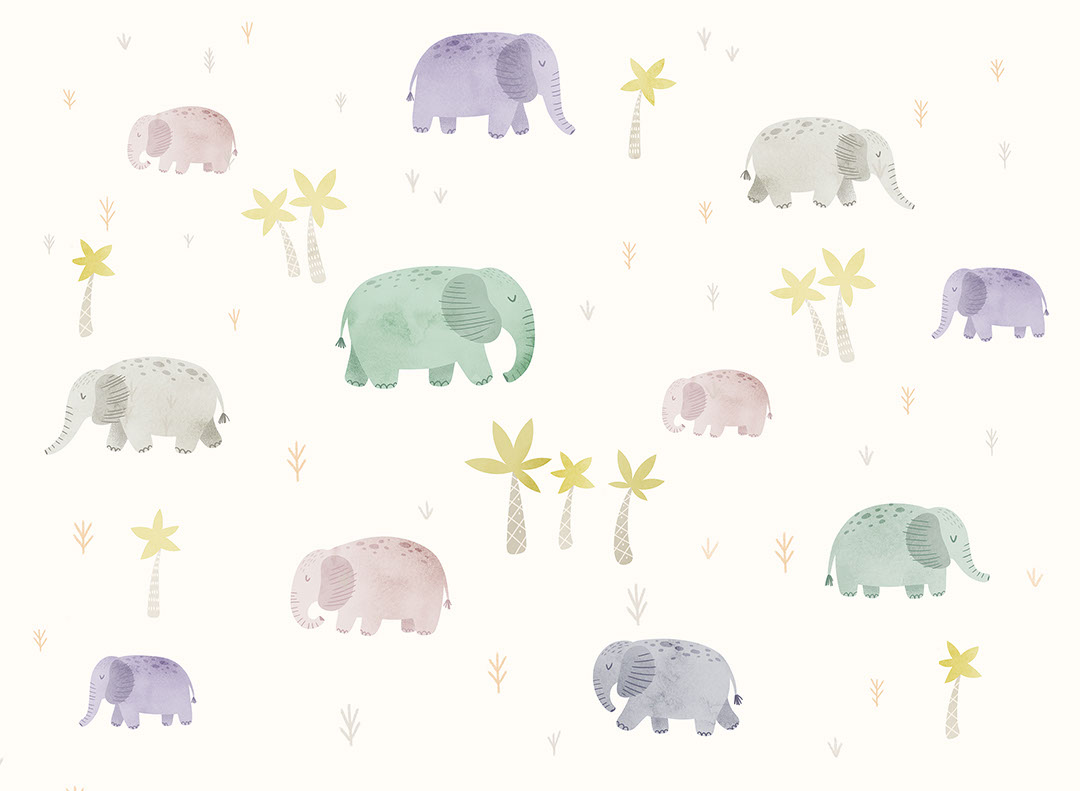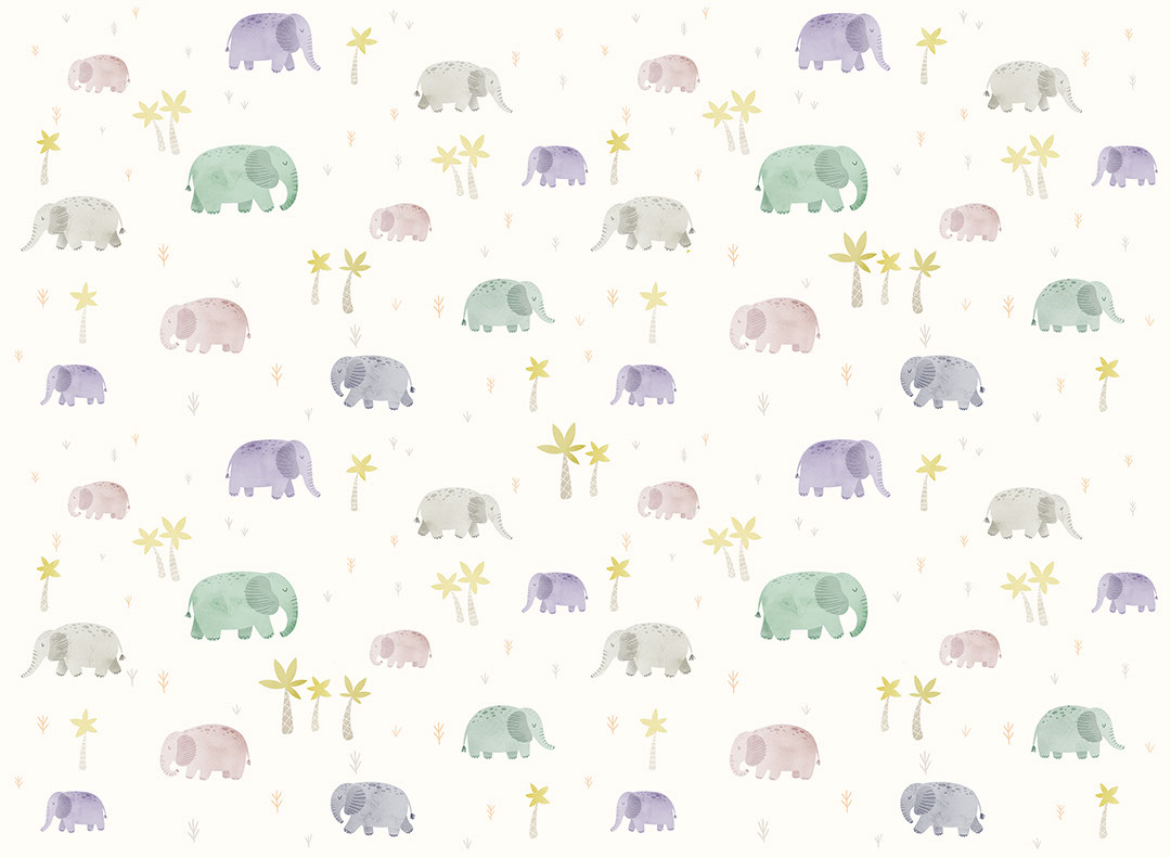 Papier peint éléphants aquarelles délicates