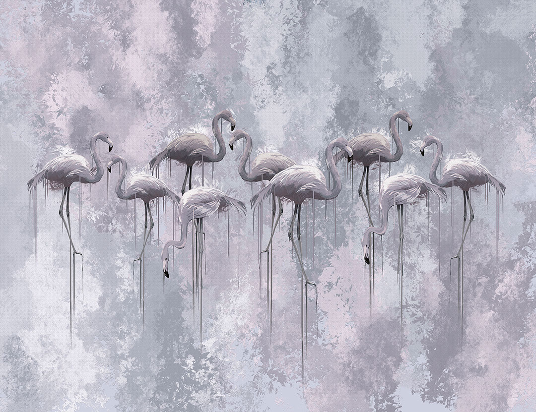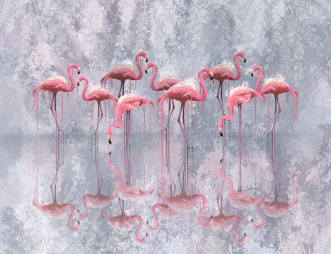 Papier peint de motifs de palmiers et de flamants roses en technique de crayon
