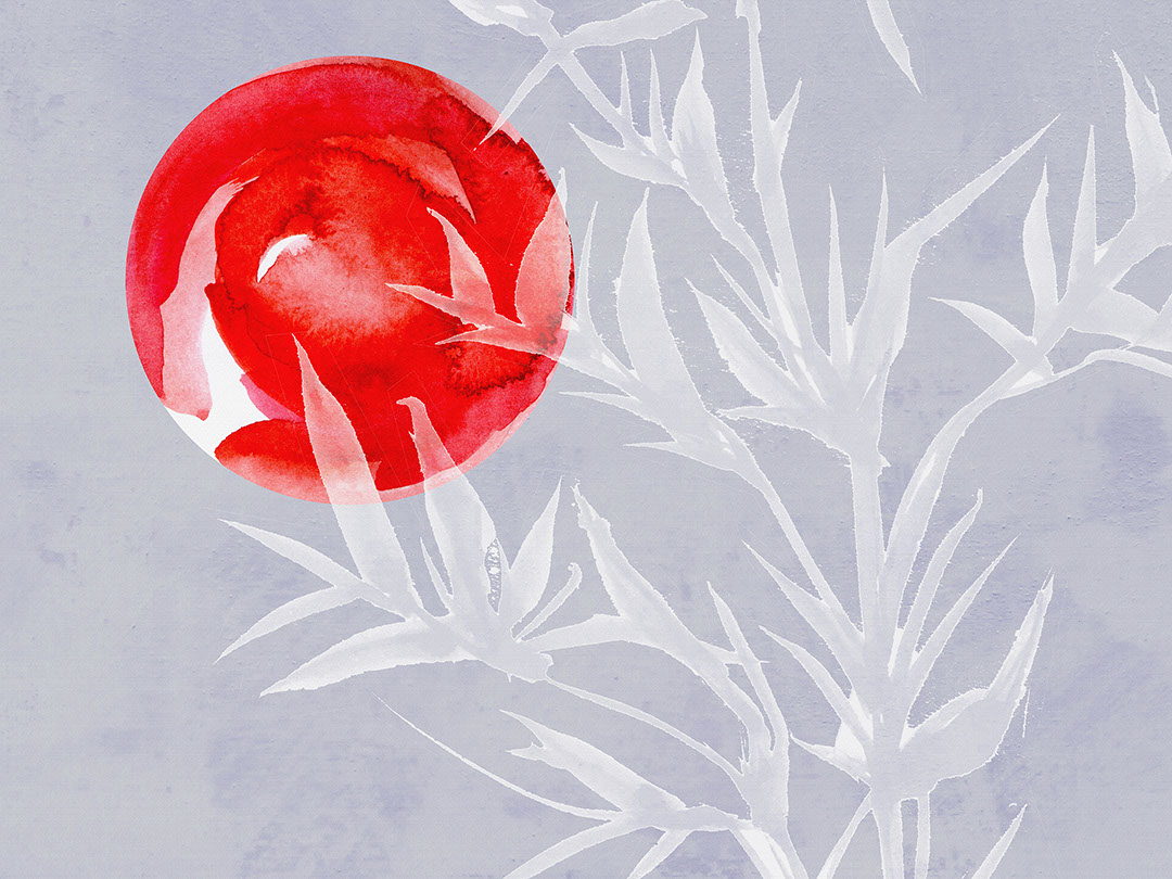 Papier peint 3D avec des arêtes d’herbe et une géométrie métallique texturée
