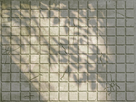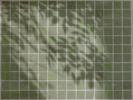 Fresque murale avec des carreaux en pierre et des ombres de feuilles