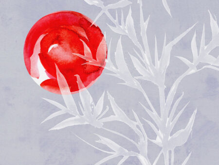 Fresque murale asymétrique avec motifs de bambou et de montagnes dans un style asiatique