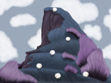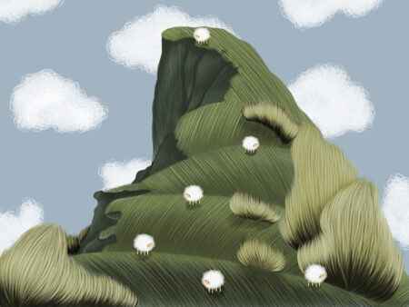 Fresque murale avec une cape verte lumineuse et des moutons mignons pour enfants