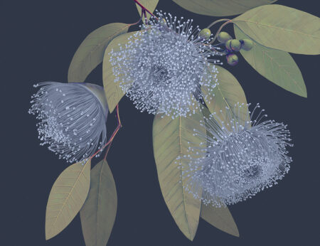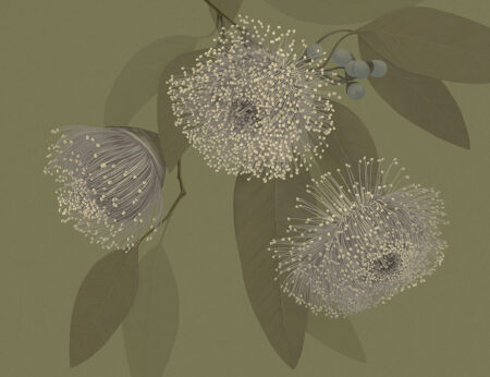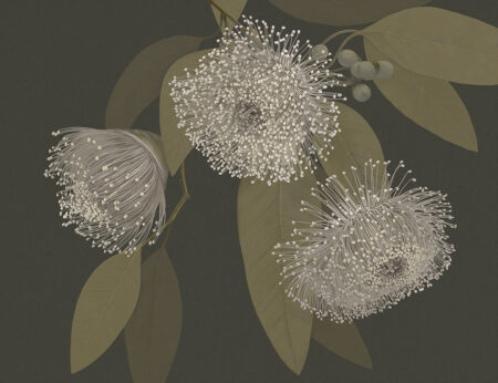 Fresque murale florale maximale délicate en dégradé sombre avec des feuilles délicates