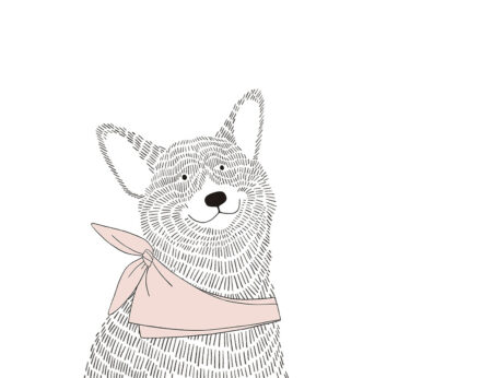 Fresque murale dans un style graphique minimaliste avec un chien Corgi