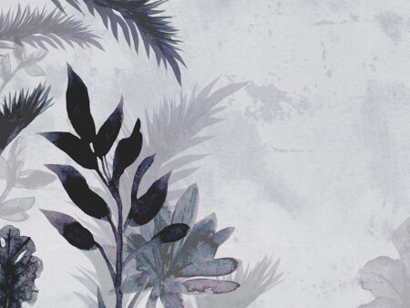 Fresque murale aquarelle gris clair de feuilles tropicales tendres