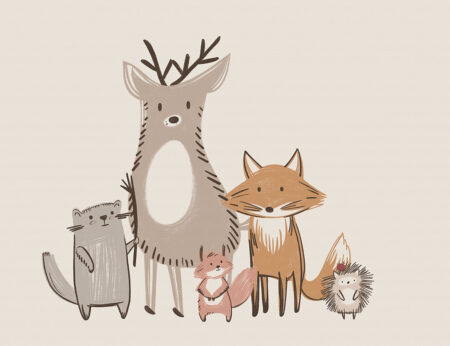 Fresque murale minimaliste d’animaux aux couleurs neutres et beiges pour enfants