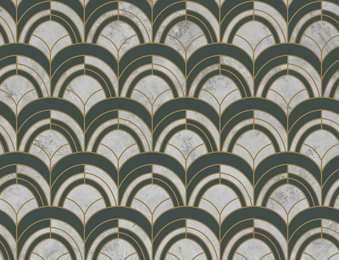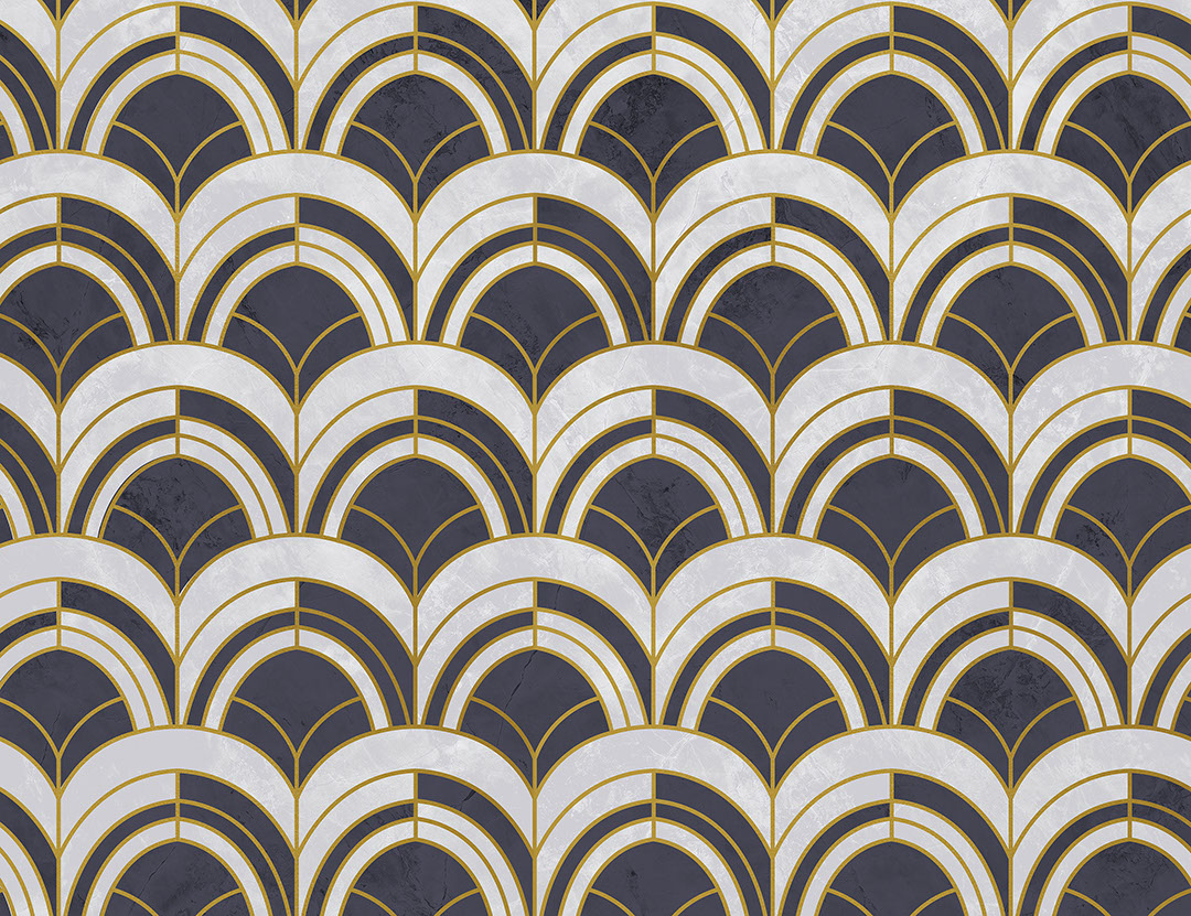 Papier peint à motifs géométriques or et beige Art Déco