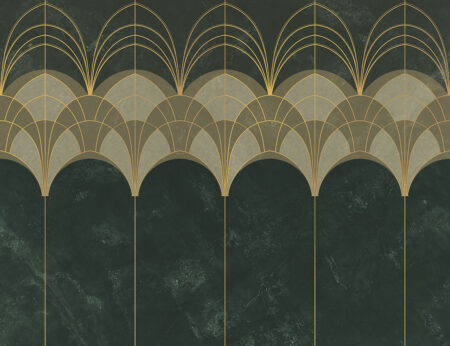 Papier peint à motifs géométriques or et beige Art Déco
