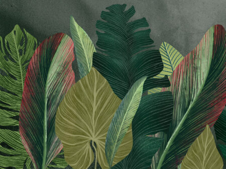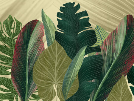 Fresque murale maximaliste avec des feuilles tropicales détaillées