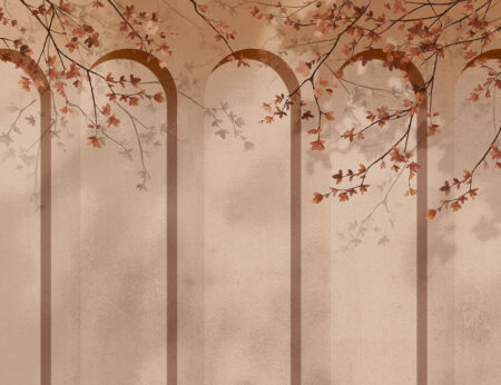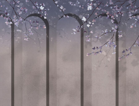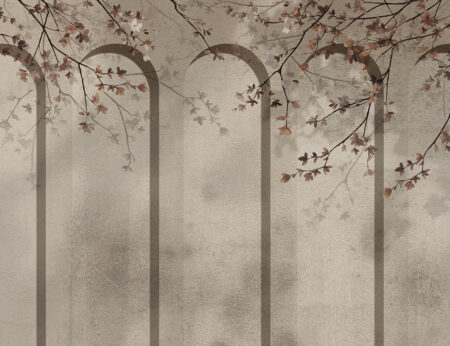 Fresque murale arcs géométriques avec une fleur délicate au sommet