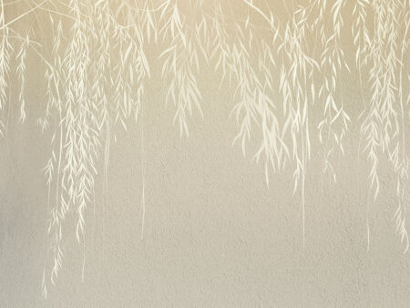 Papier peint branches blanches fragiles avec feuilles sur un mur en béton