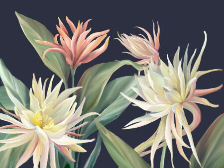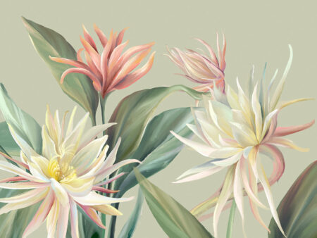 Papier peint avec des fleurs et des feuilles tropicales délicates