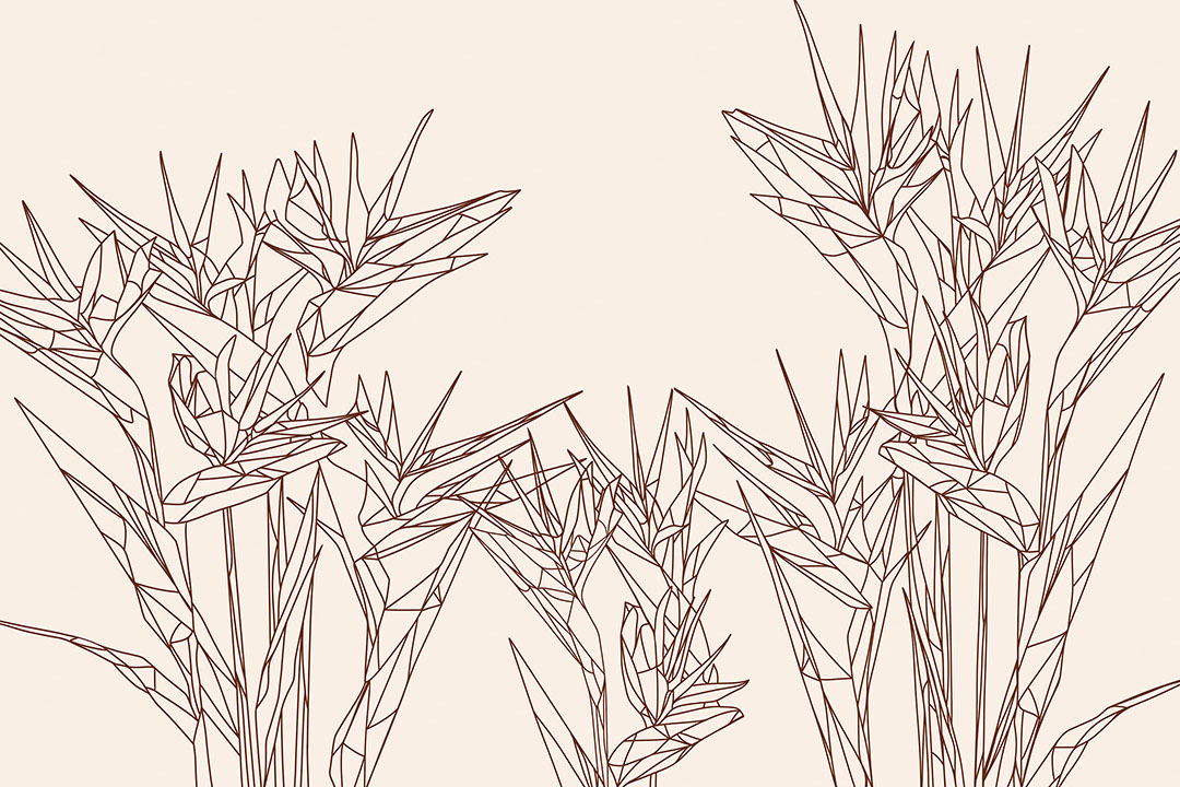 Une simple ligne brun rouille esquisse les pétales anguleux de la strelitzia sur un fond crème chaleureux : voilà toute la délicatesse du murale Contour. Le tracé facetté évoque un croquis d’architecte—net, contemporain et étonnamment aéré—laissant un large espace négatif pour que la pièce respire. Associez-le à du rotin, du lin et une touche de terre cuite pour une note tropicale subtile, ou laissez-le affûter un bureau minimaliste par sa géométrie épurée. Qu’il ancre un coin repas, encadre un couloir ou surligne la tête de lit, sa palette discrète impose sa présence sans hausser le ton.