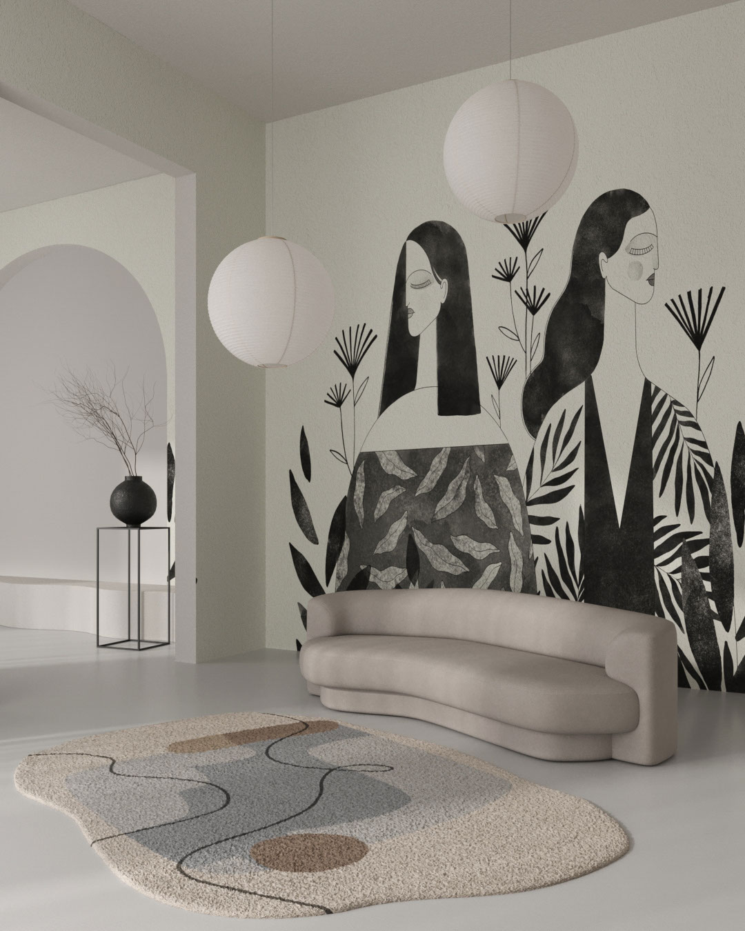 Papier peint silhouettes féminines botaniques minimalistes