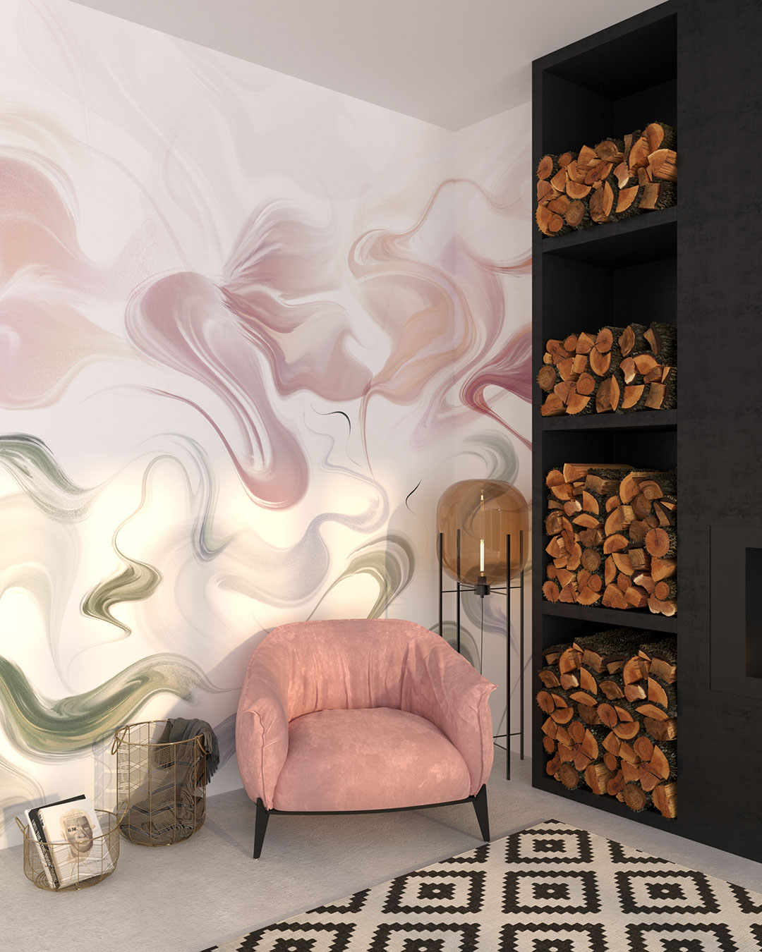 Ce papier peint évoque un léger mouvement grâce à des formes florales abstraites qui semblent se fondre dans la lumière. Les tons doux de rose, pêche et crème se mêlent à des lignes botaniques fluides, créant une ambiance apaisante et élégante. Les contours délicats et le fond lumineux apportent une sensation d’apesanteur et d’harmonie naturelle. Ce motif devient un accent décoratif raffiné, idéal pour les chambres, les salons ou les intérieurs contemporains minimalistes. «Lilt» s’accorde parfaitement avec des meubles discrets et des textures naturelles. Il ajoute une touche de sophistication sans surcharger l’espace. Un choix polyvalent pour ceux qui recherchent une atmosphère douce, artistique et contemporaine.