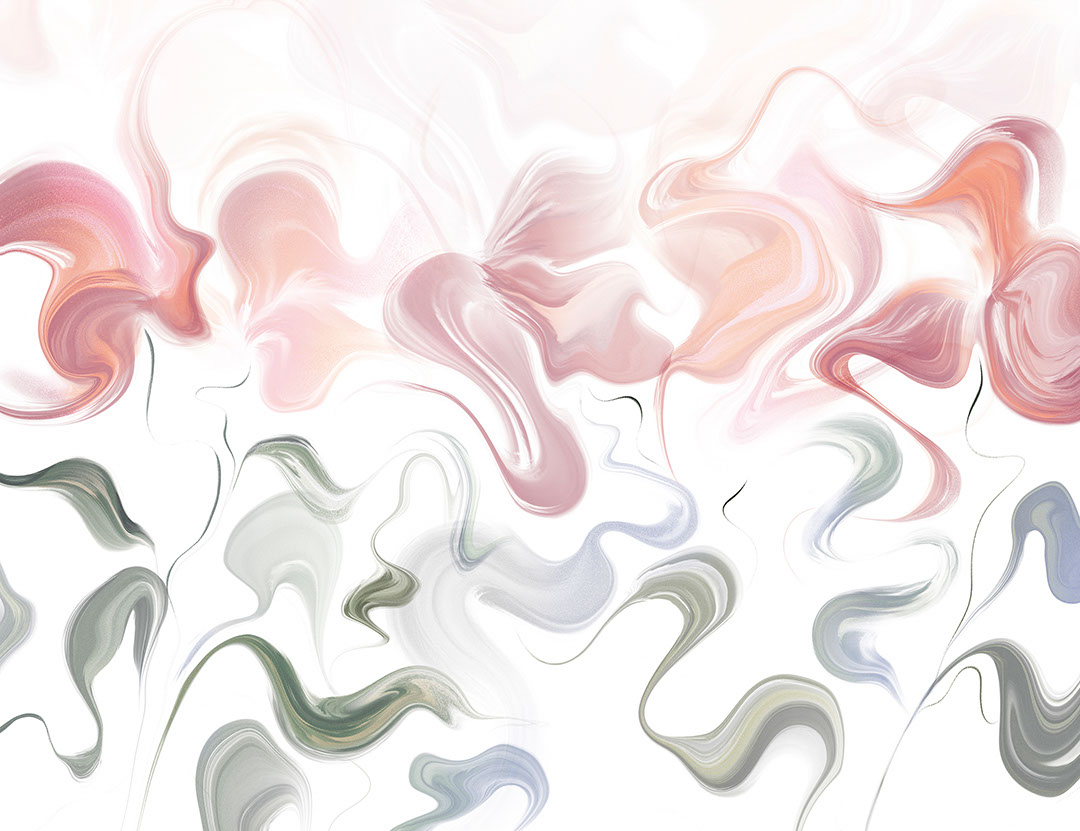 Papier peint formes florales abstraites fluides dans une palette douce et lumineuse