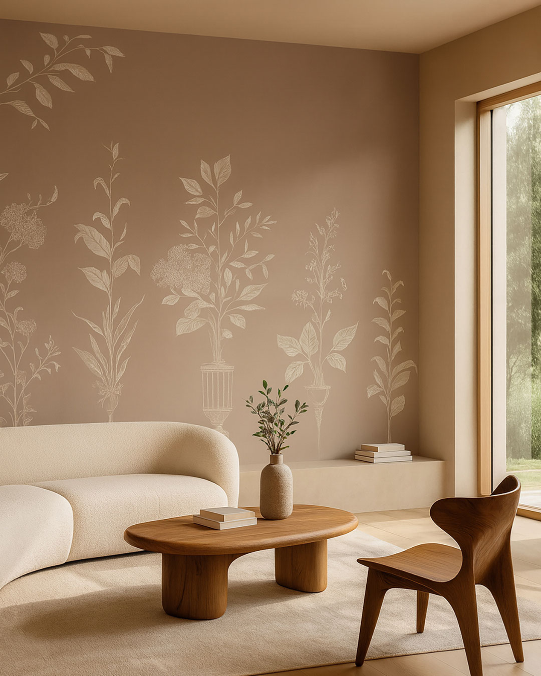 Palmetta apporte une élégance raffinée grâce à ses motifs botaniques délicats en tons taupe beige doux. Elle apporte structure et harmonie et convient parfaitement à un salon, une chambre ou un bureau où l’on recherche la tranquillité. Palmetta se marie très bien avec des meubles en bois clair, des textiles crème et un décor minimal. Elle réchauffe l’espace tout en restant discrète. C’est un choix intemporel pour des intérieurs naturels et élégants.