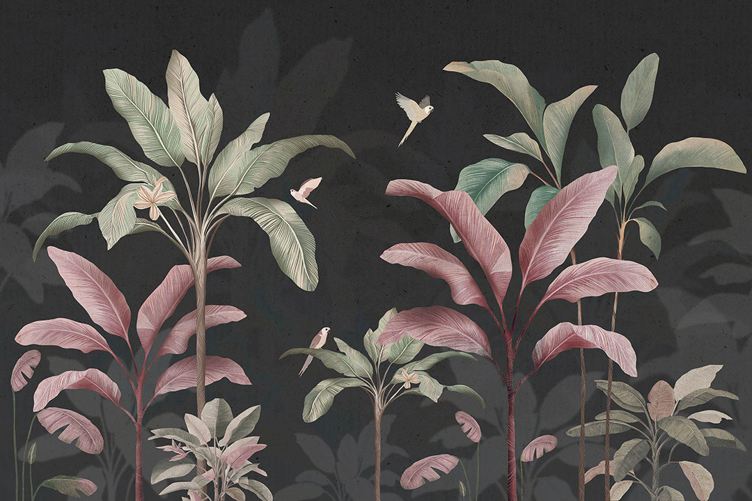 Meliora transforme une composition tropicale familière en une scène plus dramatique et atmosphérique. Le fond sombre met en valeur les silhouettes végétales et renforce la profondeur. Le mural est parfait en mur d’accent dans les salons et chambres recherchant un impact visuel fort. Les tons riches de vert et de rose créent un contraste élégant. Meliora se marie bien avec les bois foncés, le laiton et un éclairage chaud et doux. Dans les grands espaces, il ajoute une touche d’exotisme moderne et de dramatisme raffiné. C’est un excellent choix pour ceux qui aiment les intérieurs profonds et atmosphériques.