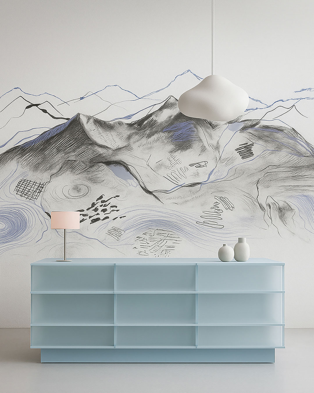 Ce papier peint combine des traits linéaires expressifs et de subtils accents pour créer une composition montagnarde moderne et émotionnelle. La palette monochrome ajoute à la fois dramatisme et élégance. Les lignes nettes contrastent avec des textures douces, renforçant la profondeur visuelle. Ce motif évoque la sérénité et la force tranquille de la nature. Il convient parfaitement aux intérieurs contemporains et aux espaces créatifs. Il s’intègre aisément à un décor minimaliste. Un choix idéal pour les amateurs de graphisme raffiné et de paysages naturels.